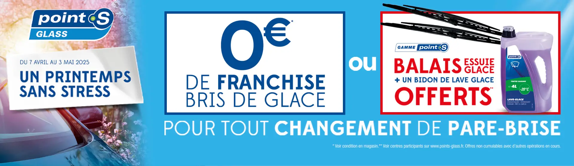 • Pour tout changement de pare-brise 0€ de franchise bris de glace ! *